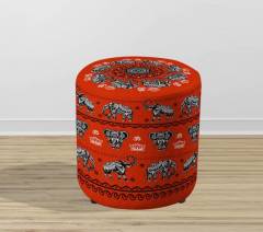 FİLLER DESENLİ KIRMIZI YUVARLAK PUF ARMİKIRMIZIFİL